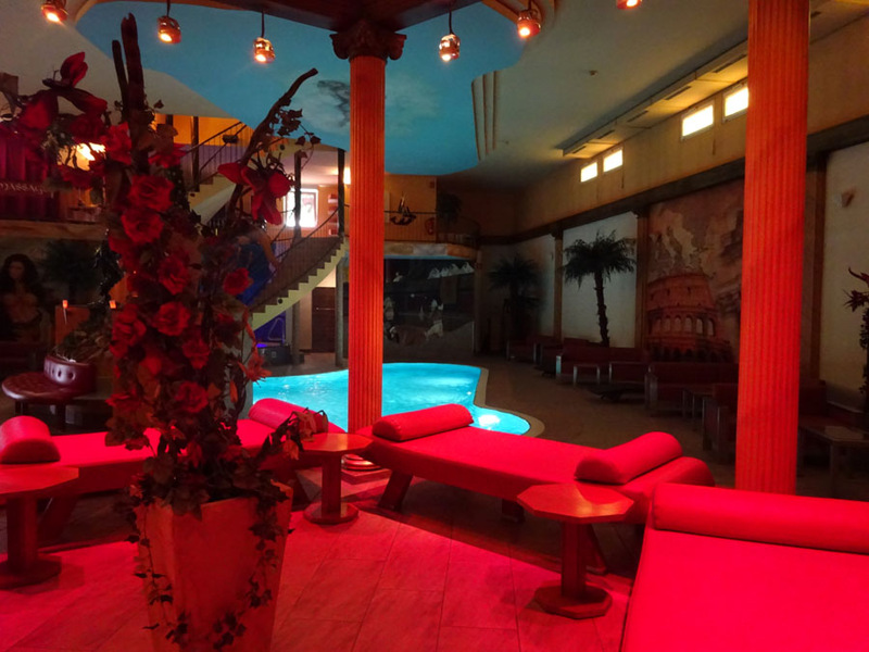 Das sich über mehrere Etagen erstreckende Gebäude hat einen großzügig angelegten Wellnessbereich, der unter anderem über einen großen Swimmingpool mit Wasserfall, eine Saunalandschaft, bestehend aus drei verschiedenen Saunen, Tauchbecken, Whirlpool, Videotorium und ein Solarium verfügt. Besonders attraktiv kann sich in diesem Kontext auch der Gang ins Freie gestalten. Hier in einer der Relaxliegen den Sonnenschein genießen, sich in die gut geschützte Lounge-Ecke begeben oder im Strandkorb angeregte Gespräche mit weiblichen Clubgästen führen - einfach herrlich! Das sollte an dieser Stelle noch erwähnt werden: Gespräche wie das oben genannte, haben immer fast alles, aber nie einen Korb zur Folge für den männlichen Clubgast …