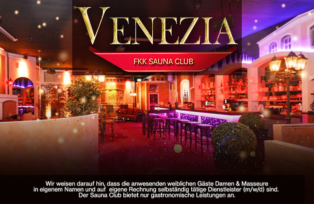 Der Sauna Club Venezia bietet nur gastronomische Leistungen an, der Zutritt ist nur volljährigen Gästen gestattet. Wir weisen darauf hin, dass die anwesenden weiblichen Gäste Damen & Masseure in eigenem Namen und auf eigene Rechnung selbständig tätige Dienstleister (m/w/d) sind. Sie sind nicht Subunternehmer oder Angestellte des Palmas Sanuna Club. Sämtliche angebotenen und kostenpflichtigen Dienstleistungen werden als Geschäftsbeziehung ausschließlich zwischen diesen Unternehmerinnen und den männlichen Gästen eingegangen. Das Venezia hat keinen Einfluss auf die Ausgestaltung und die Abwicklung.