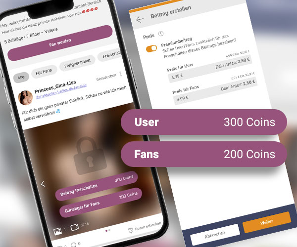 Premium-Beiträge können User unabhängig davon freischalten, ob sie dein Fan sind oder nicht. Damit erreichst du mehr Nutzer die deine Inhalte kaufen können und kannst Usern unverbindliche Einblicke in deine Inhalte gewähren.