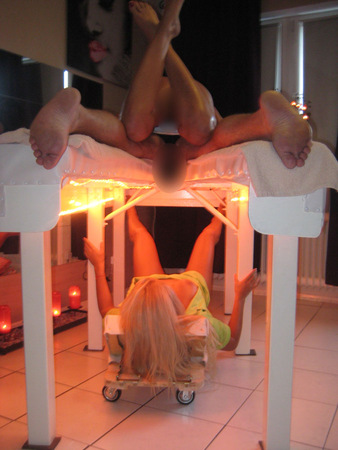auf dem Spezialtisch auf dem Bauch. Deine wunderschöne Masseurin